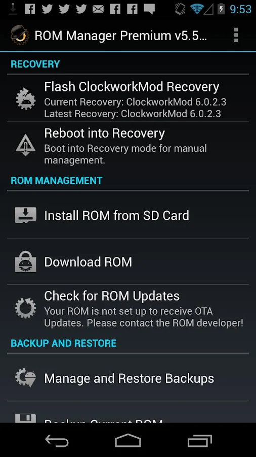 1. langsung saja, Instal dulu aplikasi Rom Manager dari Play Store: https://play.google.com/store/apps/details?id=com.koushikdutta.rommanager