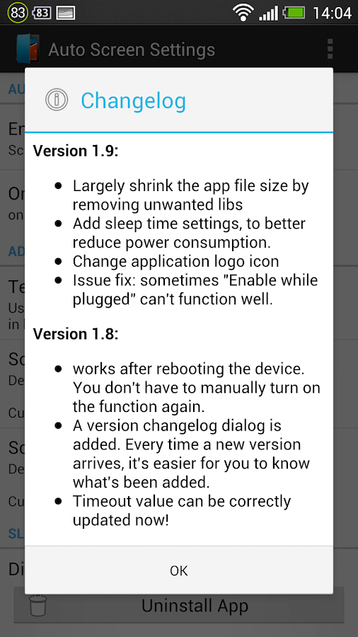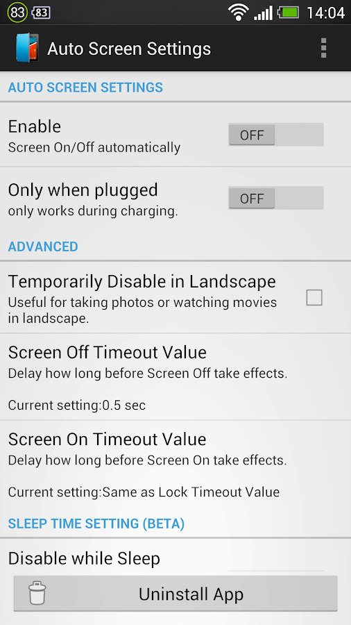 0. Memodifikasi Pengaturan pada "Auto Layar Settings" app dan memungkinkan fungsi