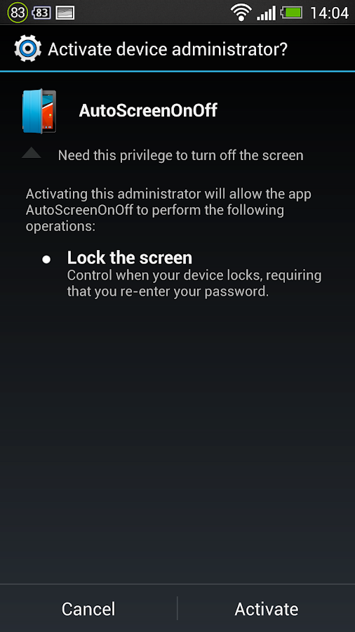 3. Setuju untuk mengaktifkan perangkat manajemen. (Hal ini diperlukan untuk mematikan layar)