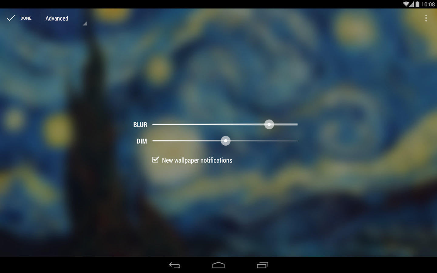 3. Agan juga bisa mengatur tingkat blur dan kedipan live wallpaper dengan memilih advanced.